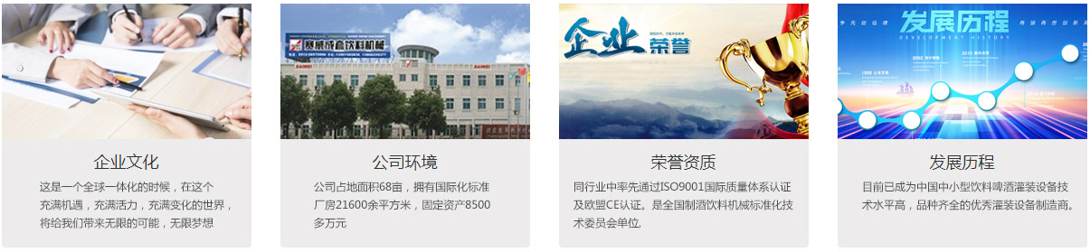 张家港市饮料机械有限公司Q江苏赛威)是一家专业从事饮料啤酒灌装包装自动化生U设备及成套水处理设备设计制造的企业。是中国饮料啤酒装备行业的核心骨q企业,是中国较早从事生产液体灌装设备的厂家之一Q是2008TOP中国食品工业十大民族刉商。目前已成ؓ中国中小型饮料啤酒灌装设备制造商?br />     公司占地面积68亩,拥有国际化标准厂?1600余^方米Q固定资?500多万元。公司先后投入巨资,从日本、美国引q精?加工中心{先q加工设备,实现了从产品设计、生产、销售、售后服务一体的C化管理体制。在同行业中率先通过ISO9001国际质量体系认证及欧盟CE认证。是全国刉饮料机械标准化技术委员会单位,参与多项国家及行业标准的制订。江苏省二计量认单位Q江苏省重合同守信用企业。张家港市企业信息化C企业?/div>